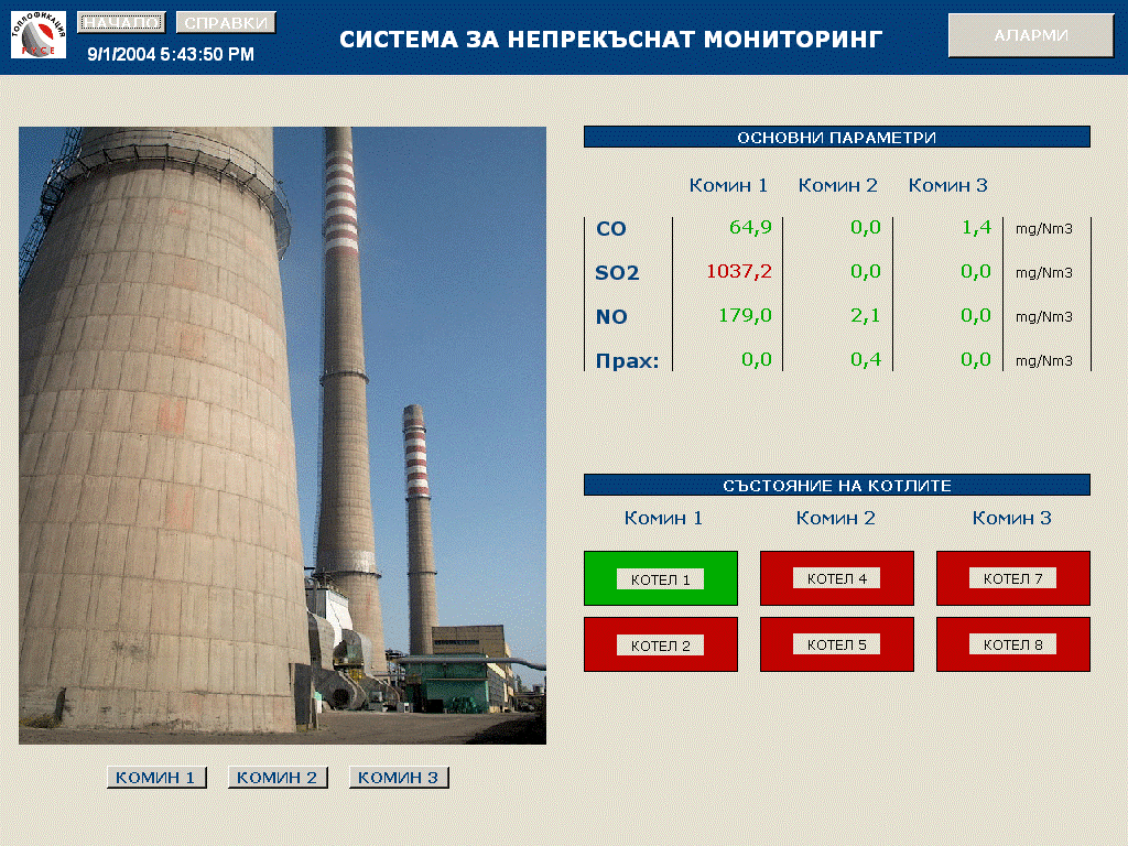 • Системи за Непрекъснат Емисионен Мониторинг (CEMS) - предимно за измерване съдържание на прах и разход на димни газове;