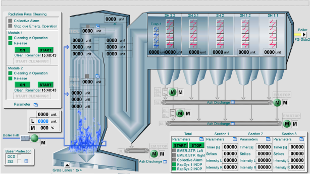 • Апаратура: Газ-анализаторни системи, измервателна апаратура, PLC – от АВВ, Измервания на прах и разход – от DURAG.